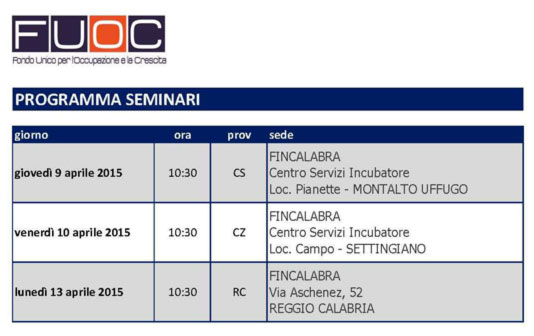 Per partecipare è possibile iscriversi direttamente su http://www.fincalabra.it/fuoc/seminari.html.