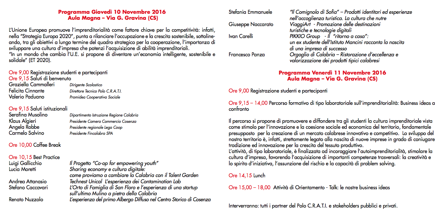 Il Polo C.R.A.T.I. ha avviato un ciclo di percorsi formativi sulla cultura d'impresa, sposando la "Strategia Europea 2020"che punta a rilanciare l'occupazione e la crescita sostenibile attraverso lo sviluppo di una cultura d'impresa che potenzi l'acquisizione di abilità imprenditoriali.