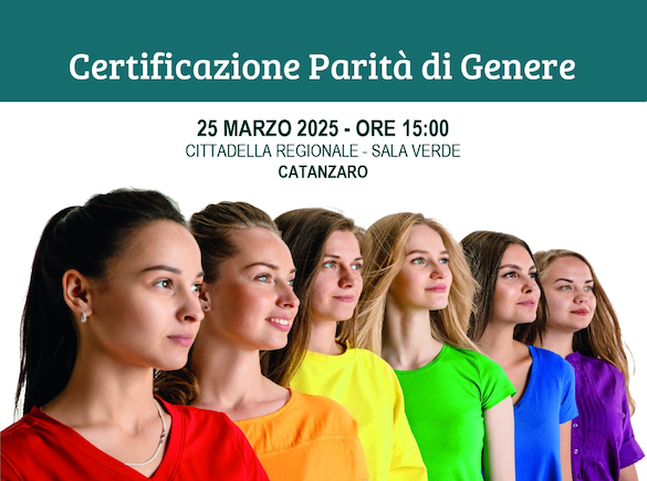 Rinviato l'incontro formativo/informativo sulla Certificazione della Parità di Genere, promosso dalla Regione Calabria, intesa come opportunità volta a favorire una maggiore partecipazione delle donne al mondo del lavoro ed anche a realizzare un beneficio rivolto alle aziende, in relazione alle opportunità economiche e di sviluppo derivanti.